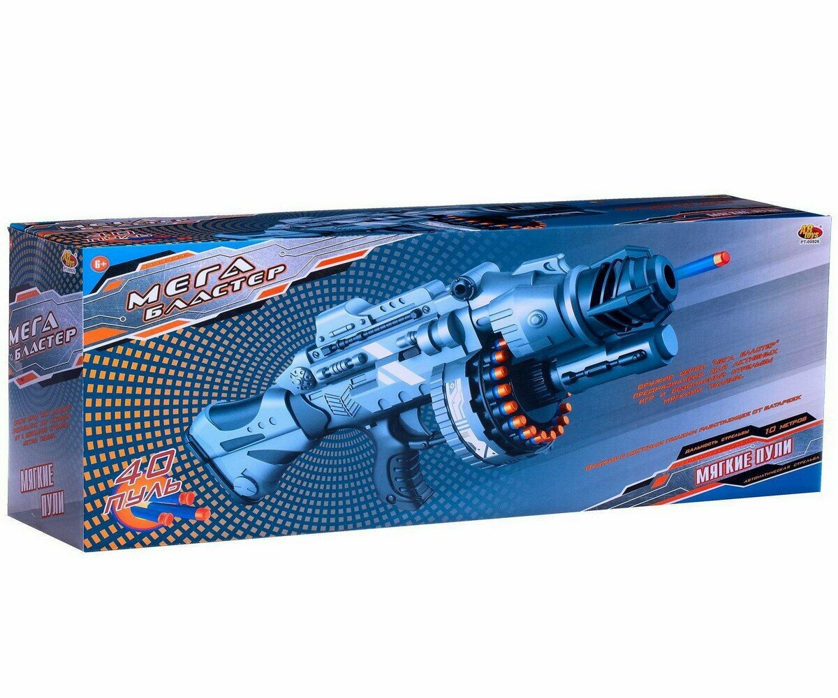 Бластер абтойс мегабластер с 40 мягкими пулями серо-голубой на батарейках pt-00926