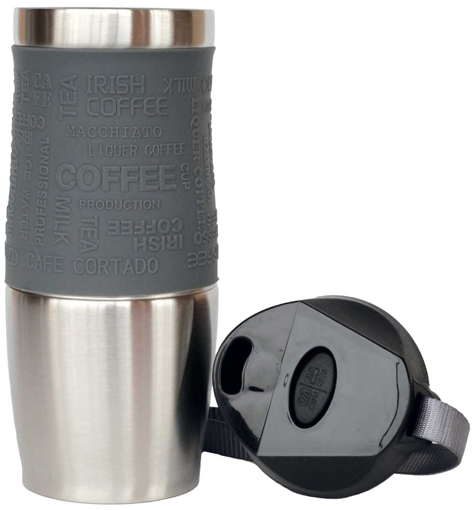 Термокружка Kamille с TPR-вставкой и ремешком (серая) 380 мл (2052)