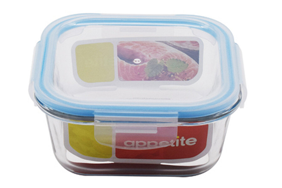 Контейнер 520мл стекл. квадр ТМ Appetite син, пласт.кр.,стекло