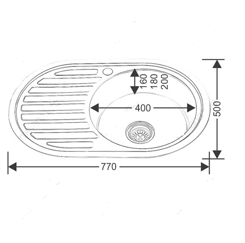 Врезная кухонная мойка Mixline из нержавеющей стали овальная 50х77 см выпуск 3 1/2 глубина 16 см, крыло левое