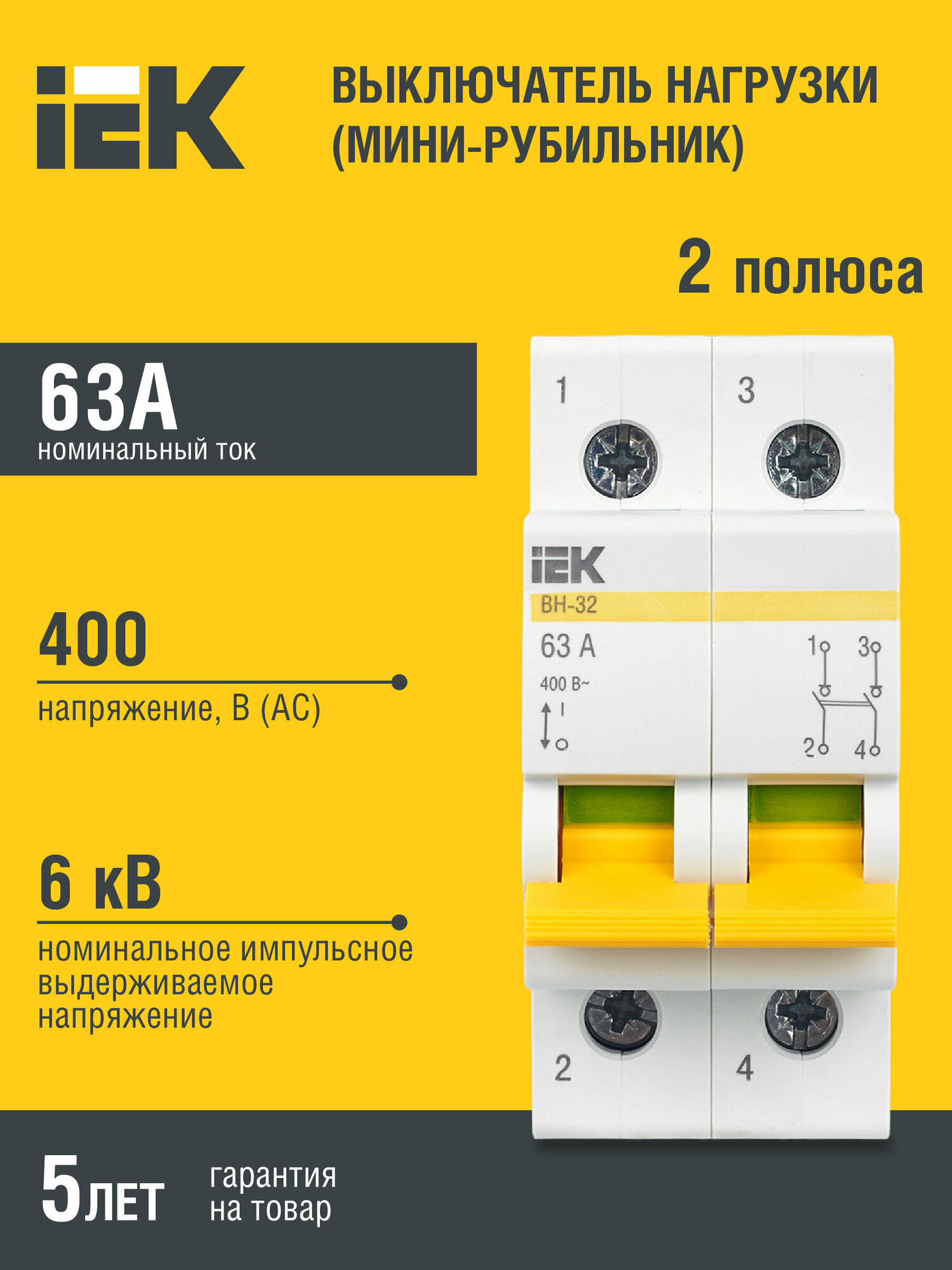 СохранитьВыключатель нагрузки IEK ВН-32 63А/2П ИЭК MNV10-2-063 интересное: