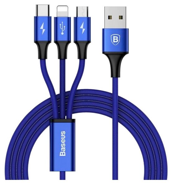 Кабель Baseus 3 in 1 Rapid Series USB - USB Type-C/Lightning/microUSB (CAMLT-SU), 1.2 м, синий