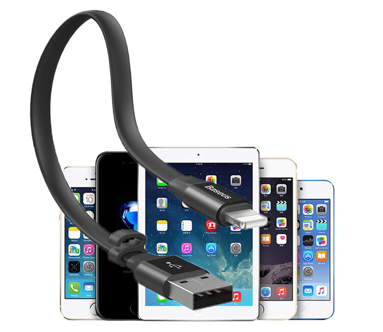 Кабель USB - 8 pin Baseus Nimble, 0.23м, плоский, 2.0A, силикон, цвет: чёрный