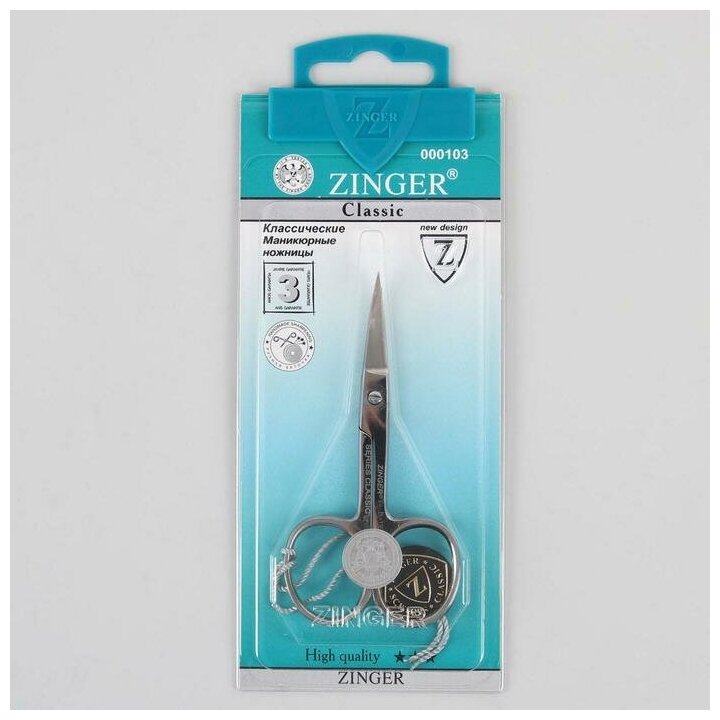 ZINGER Ножницы маникюрные, загнутые, широкие, 9 см, на блистере, цвет серебристый, В-116-S-SH