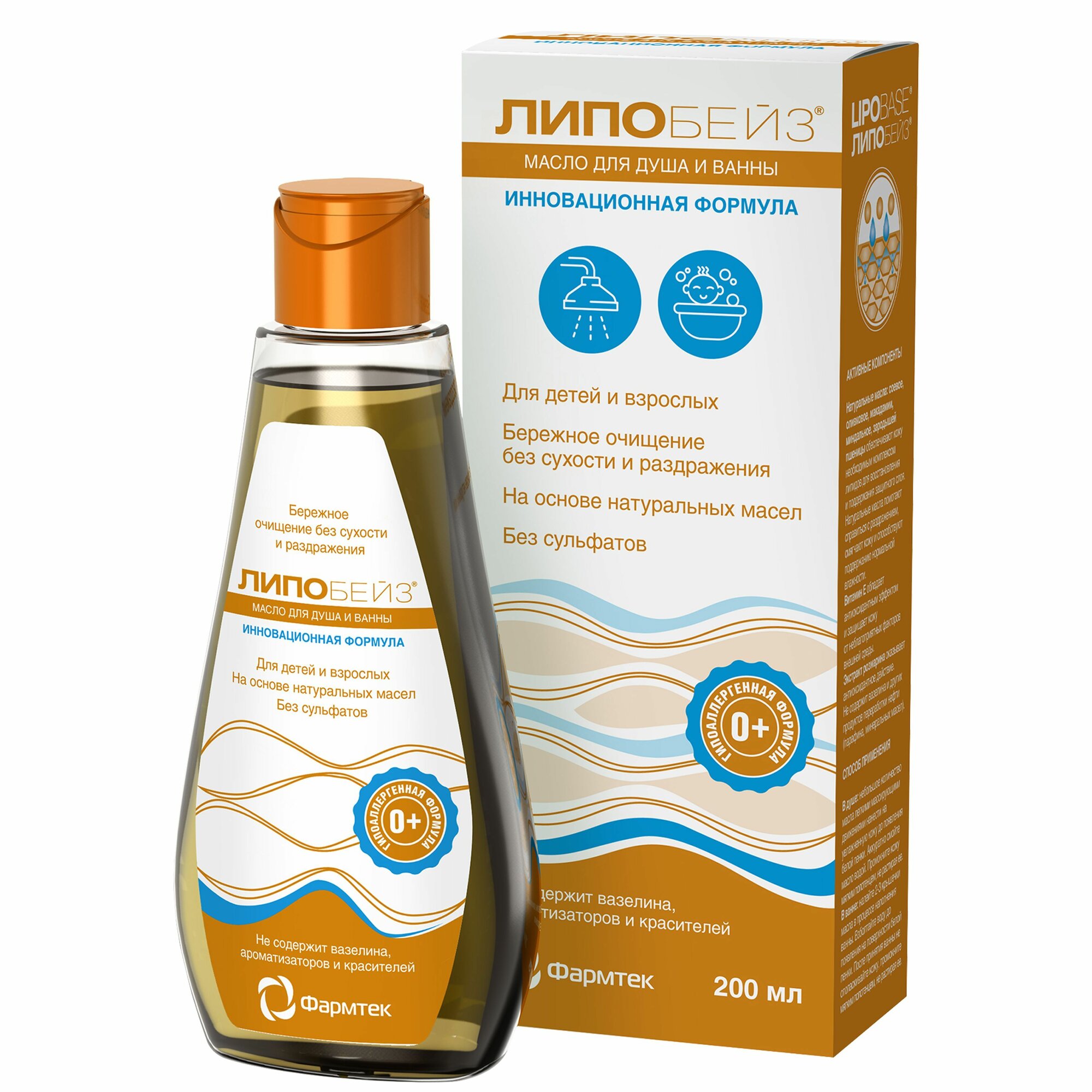 Липобейз Беби Baby масло детское для купания, для грудничков, гипоаллергенное, против сухости и раздражения 200 мл