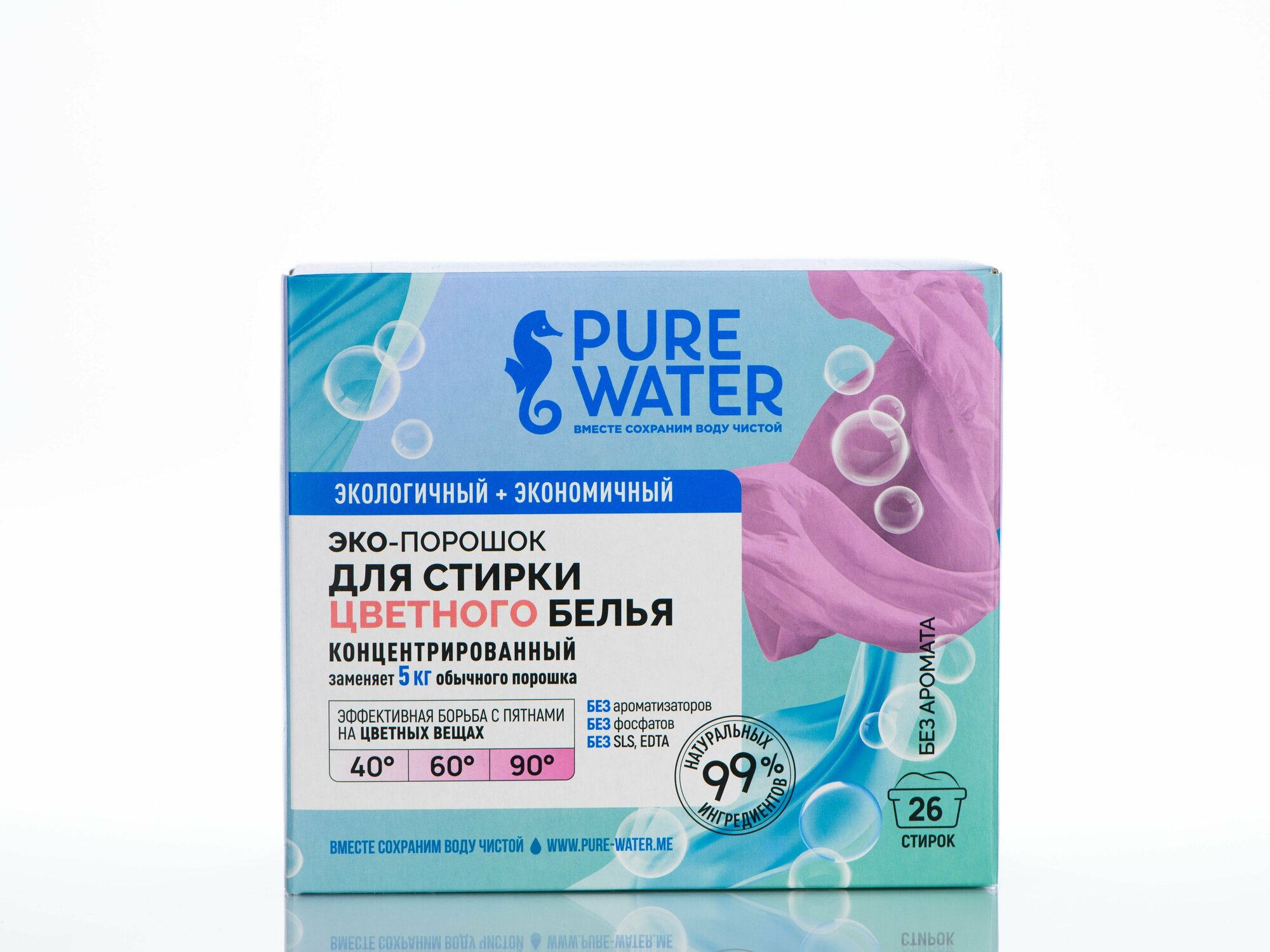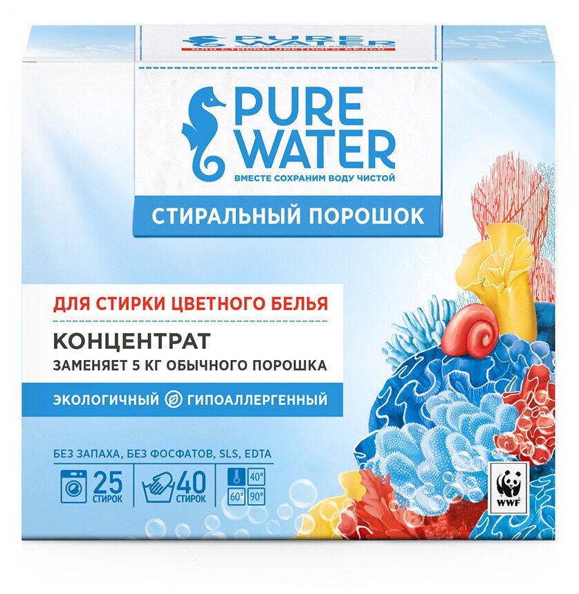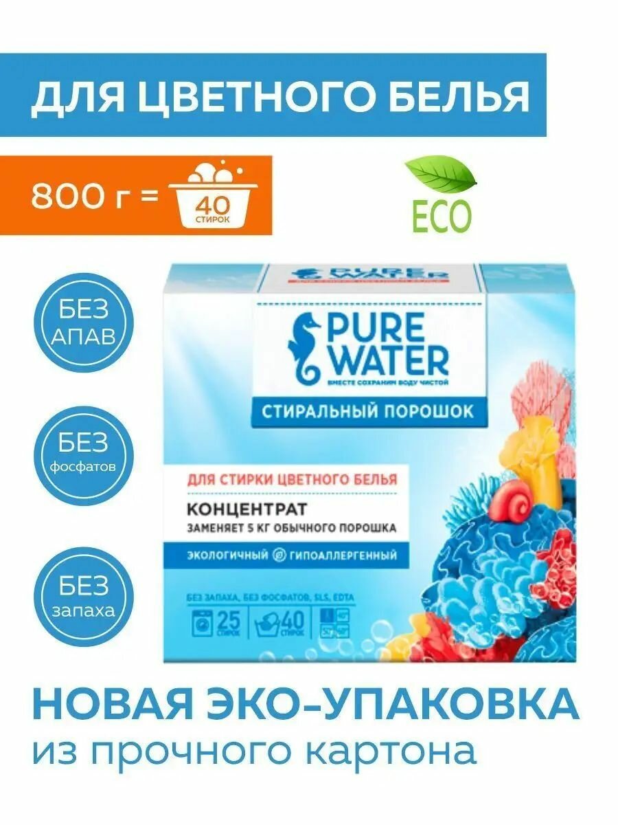 PURE WATER Стиральный порошок для цветного белья, 800 гр, PURE WATER