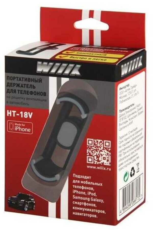 Держатель Wiiix HT-47Vmg магнитный черный/серебристый для смартфонов Ht-47vmg .