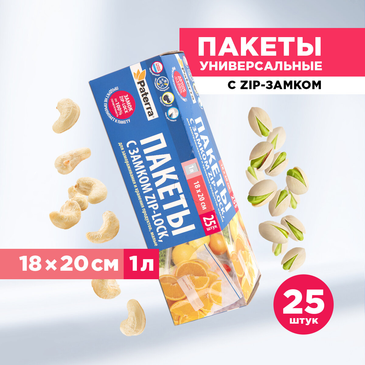 Пакеты PATERRA для хранения и замораживания с зип-замком 18х20 см, 1 л, 25 шт
