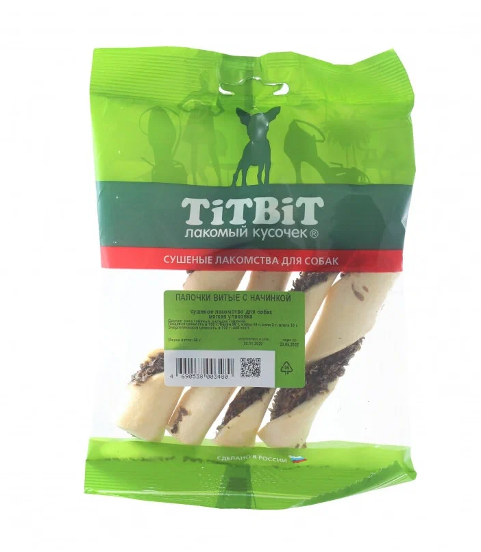 TiTBiT палочки витые с начинкой для собак - 45 г