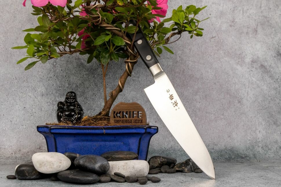 | Отзыв: | второй нож у нас от японских брендов, я бы назвала идеальный, тонкое, но в тоже время крепкое лезвие. Удобная ручка. Легко правится режущая кромка. Сравнительно долгое поддержание остроты лезвия при использовании. Легко моется. |