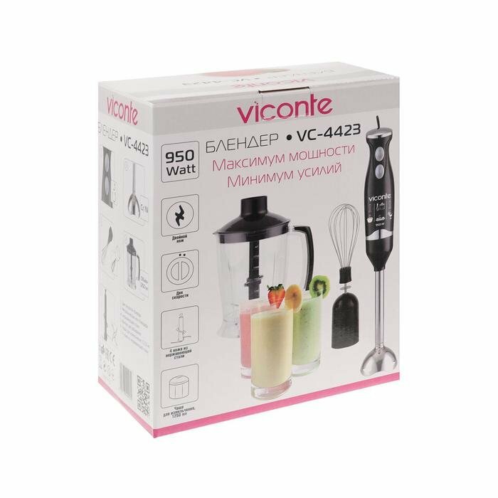 Блендер Viconte VC-4423, погружной, 950 Вт, 3 насадки, 2 скорости
