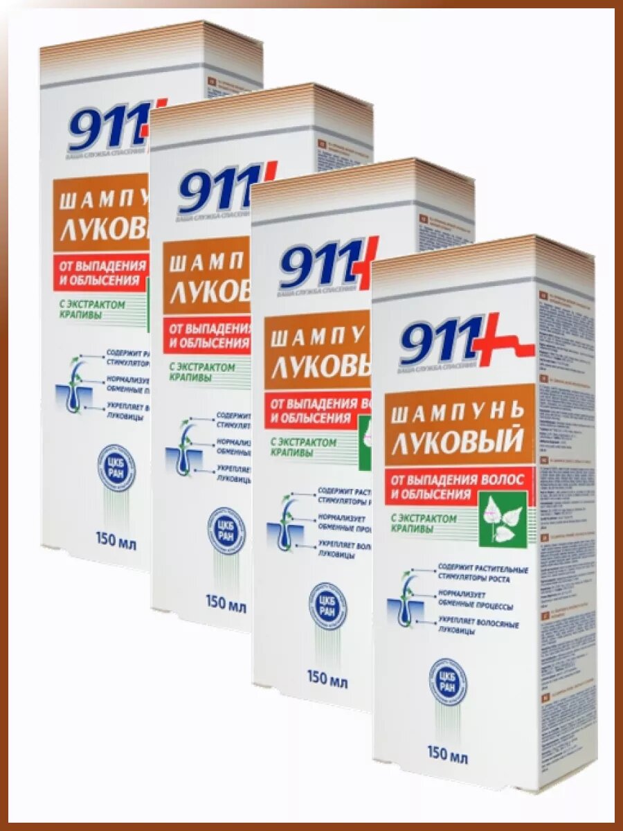911+ шампунь Луковый от выпадения волос и облысения с экстрактом крапивы, 150 мл