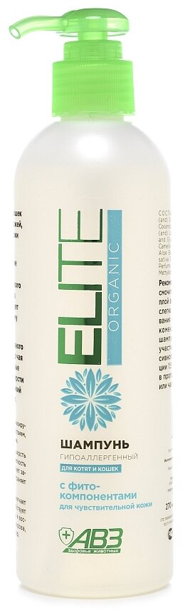 Шампунь АВЗ Elite Organic гипоаллергенный для кошек и котят, 270 мл