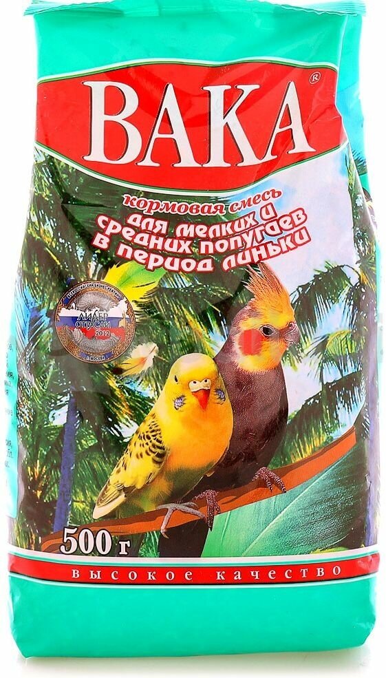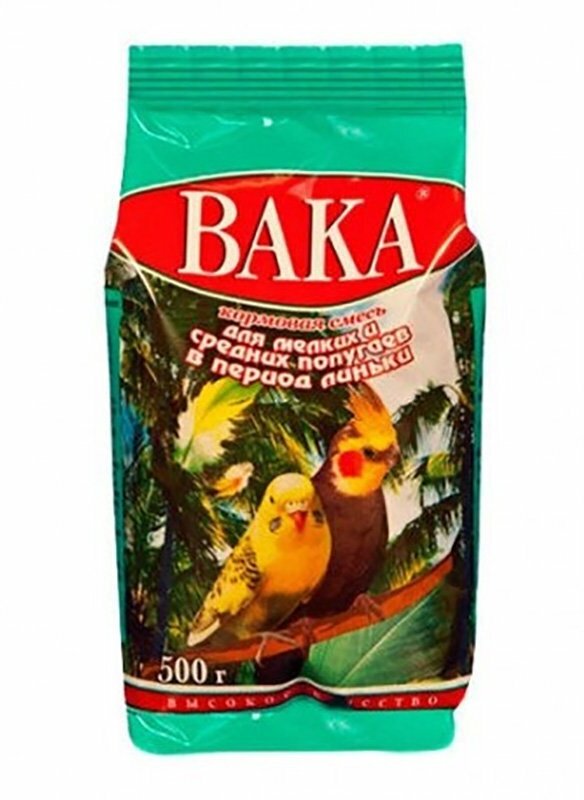 Вака "Высокое Качество" сухой корм для мелких и средних попугаев в период линьки, 0.5 кг