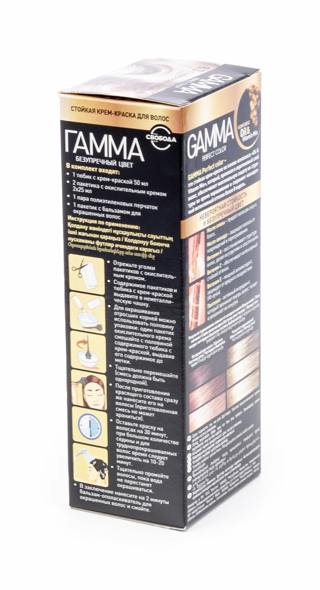 Крем-краска для волос, Свобода, Gamma Perfect color, тон 7.37 золотисто-каштановый, 50 мл