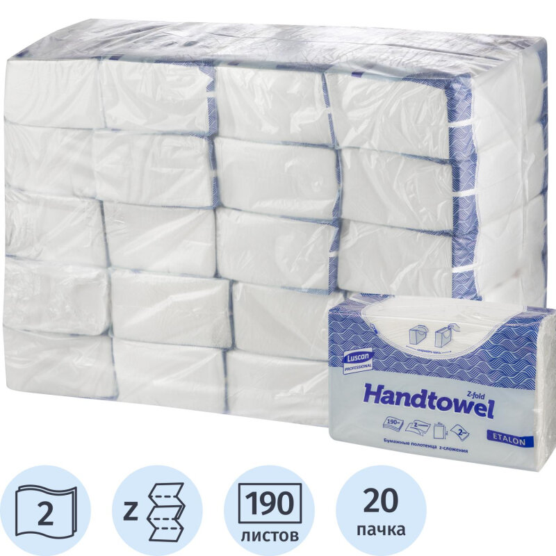 Бумажные полотенца для диспенсеров Luscan Professional Z-сложения 2-слойные 20 пачек по 190 листов (арт.368584)