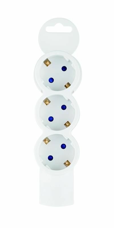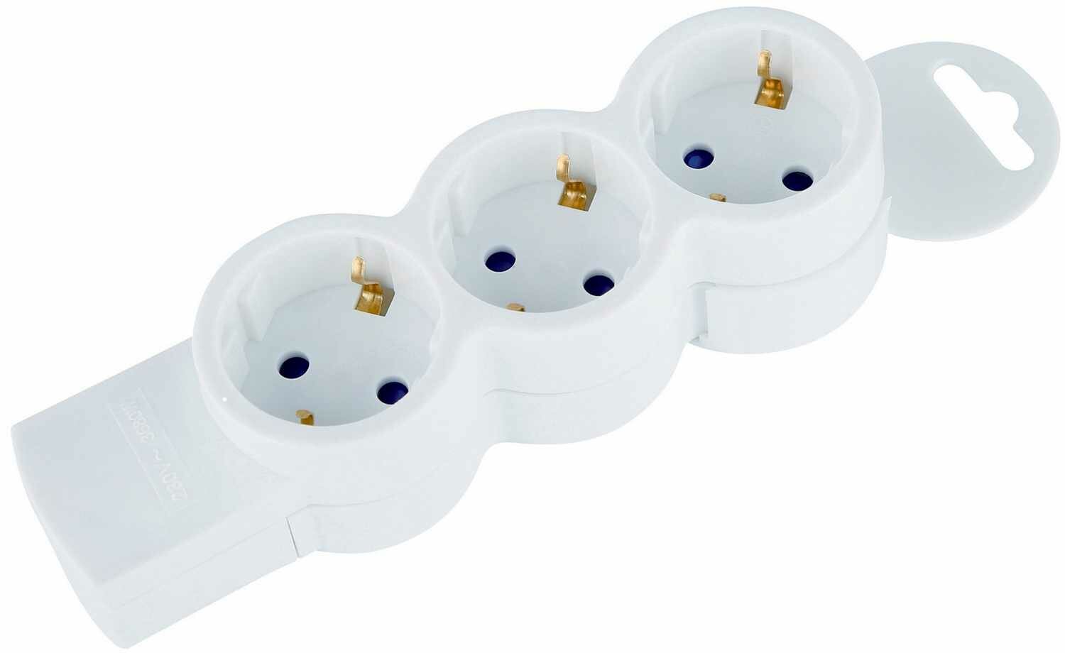 Тройник для розетки электрический с заземлением 16А, белый