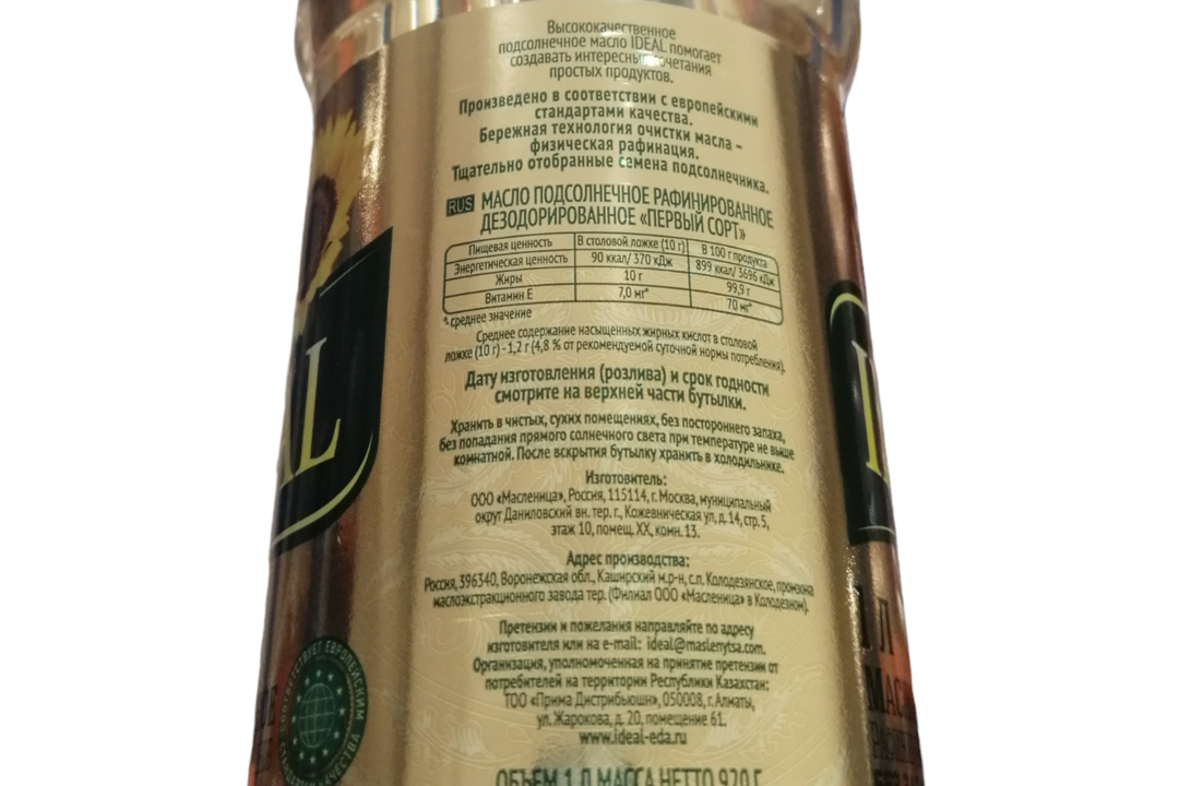 Масло Ideal подсолнечное 1 л интересное: