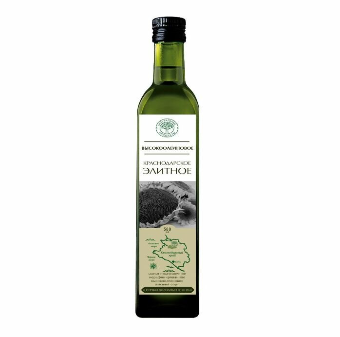 Масло подсолнечное натуральные продукты Краснодарское элитное, нерафинированное высокоолеиновое, 500 мл