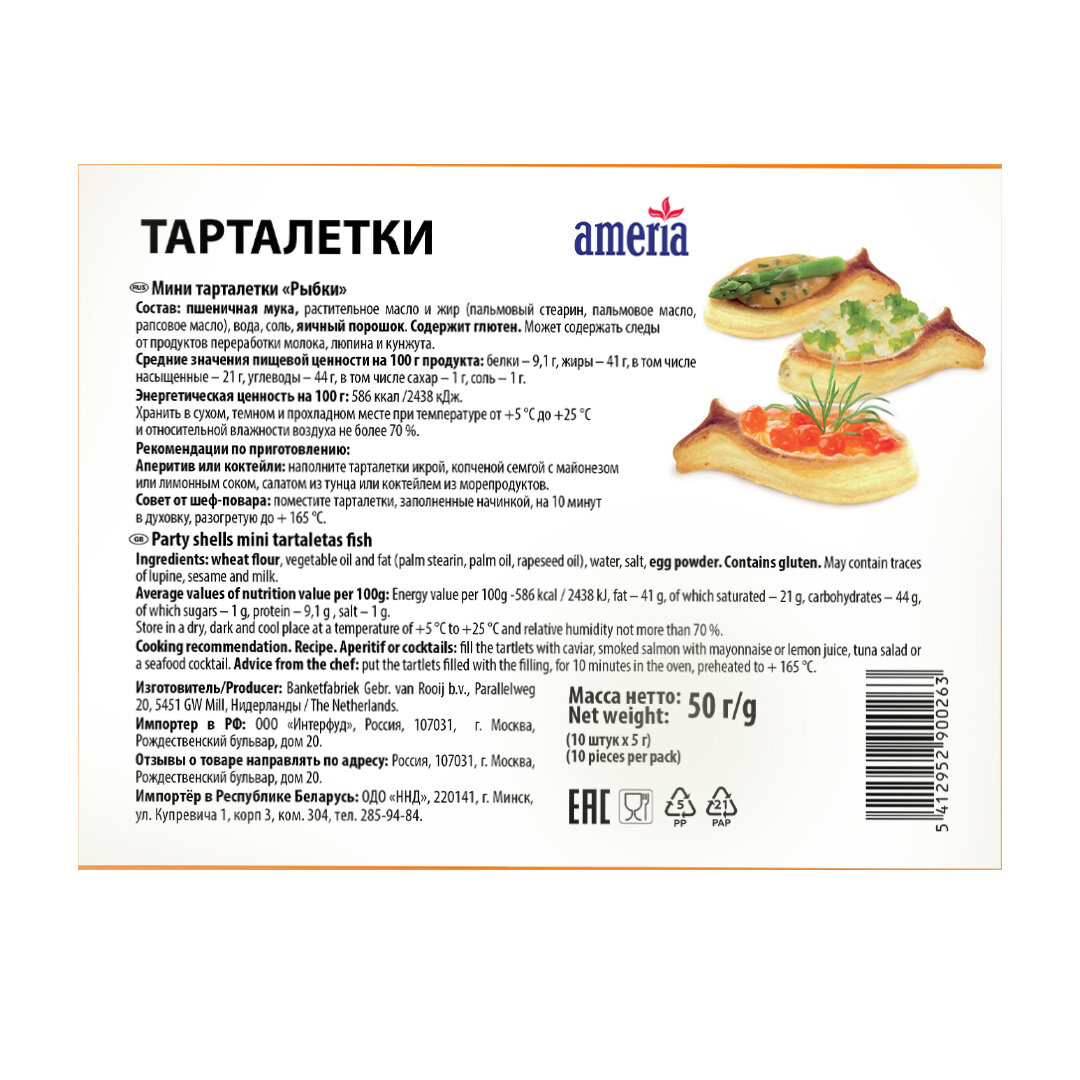 Тарталетки Мини Ameria Mini vol au vents fish рыбки, 55 г интересное: