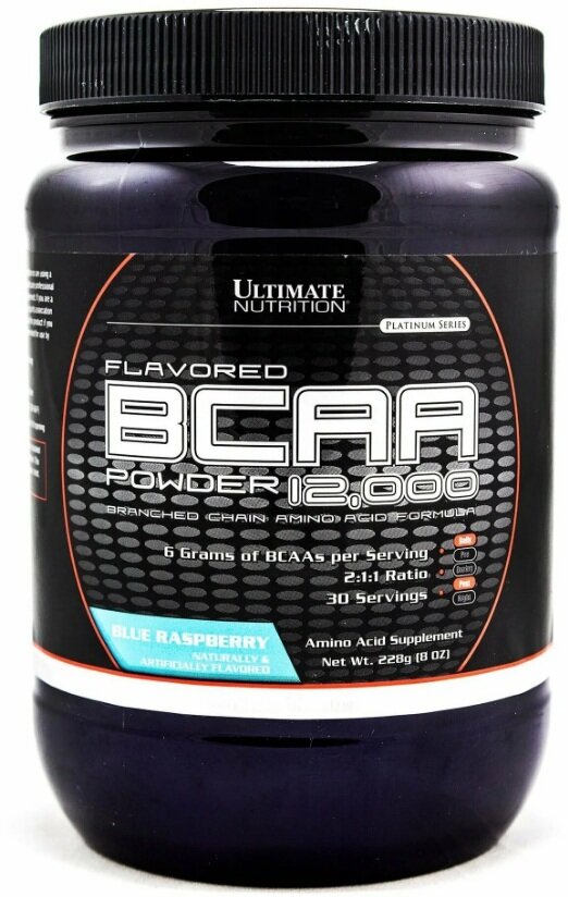 Ultimate BCAA 12000 Powder Flavored 228g (Blue Raspberry), Аминокислотный комплекс бца, 228 грамм (ежевика)