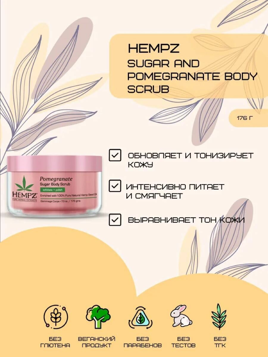 HEMPZ Скраб для тела, сахар и гранат / Body Scrub Sugar & Pomegranate 176 г