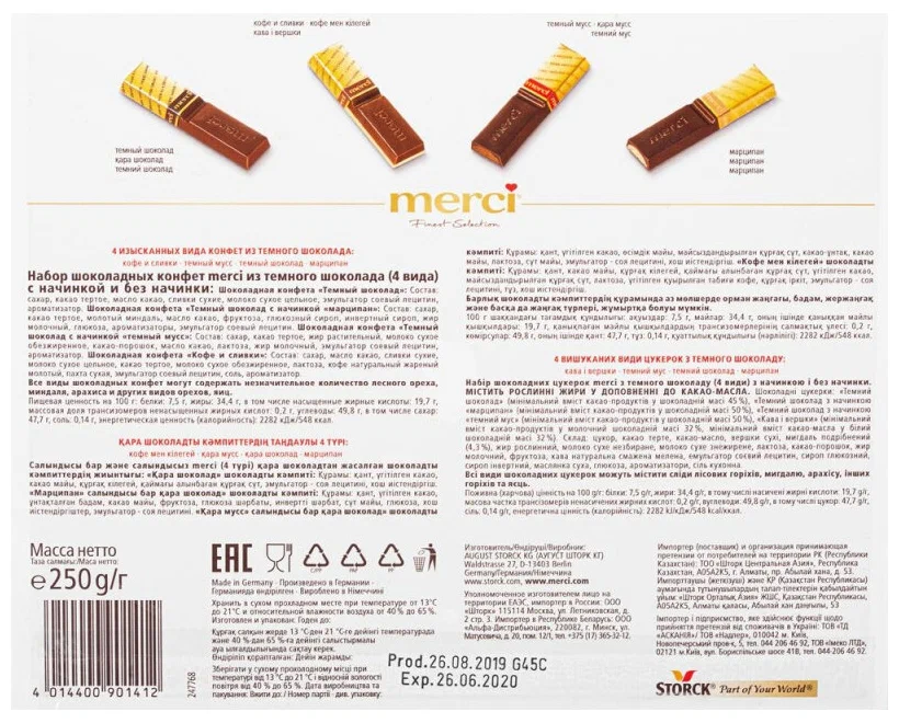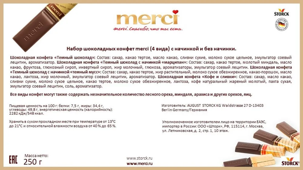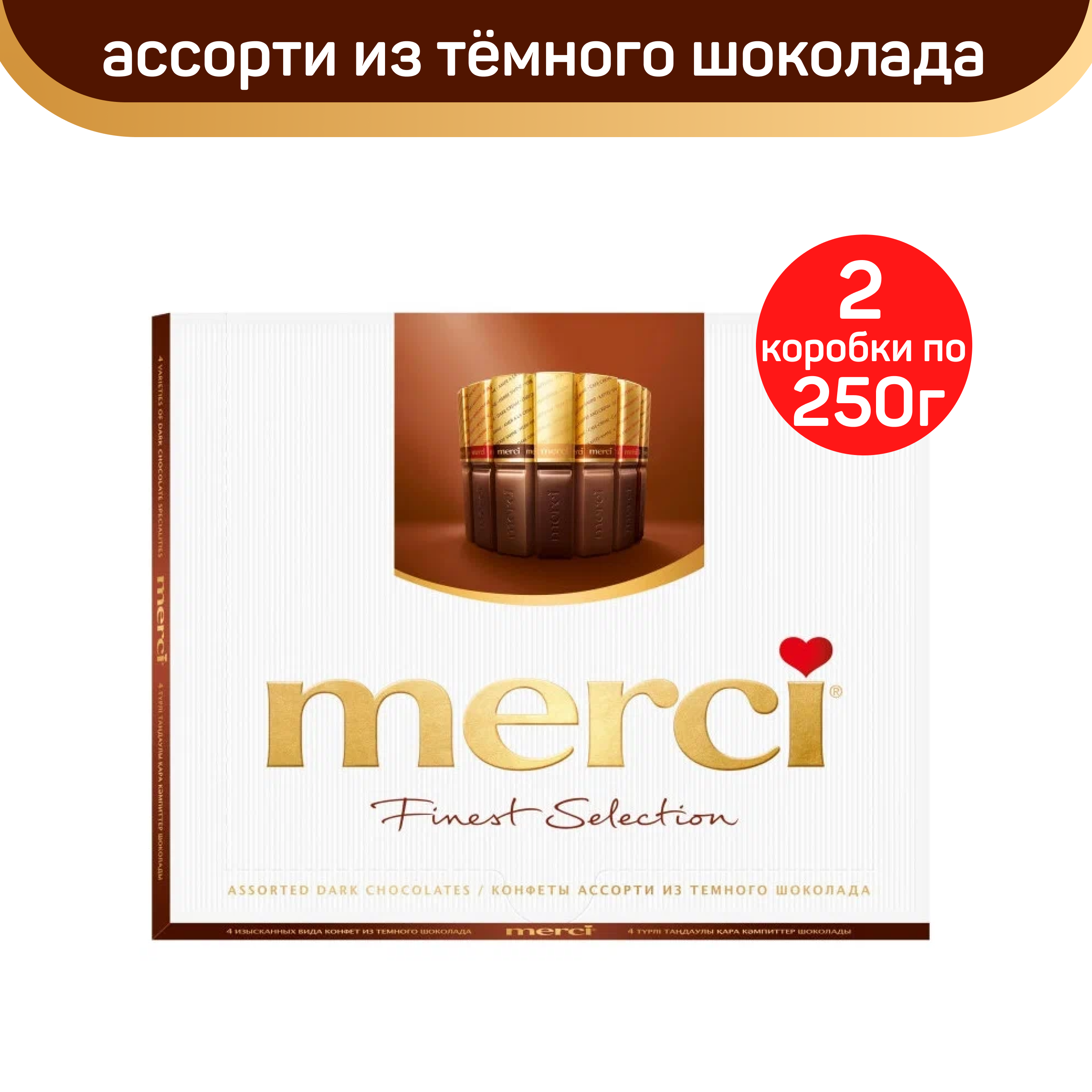 Конфеты Merci ассорти из темного шоколада, 2 шт по 250 г интересное: