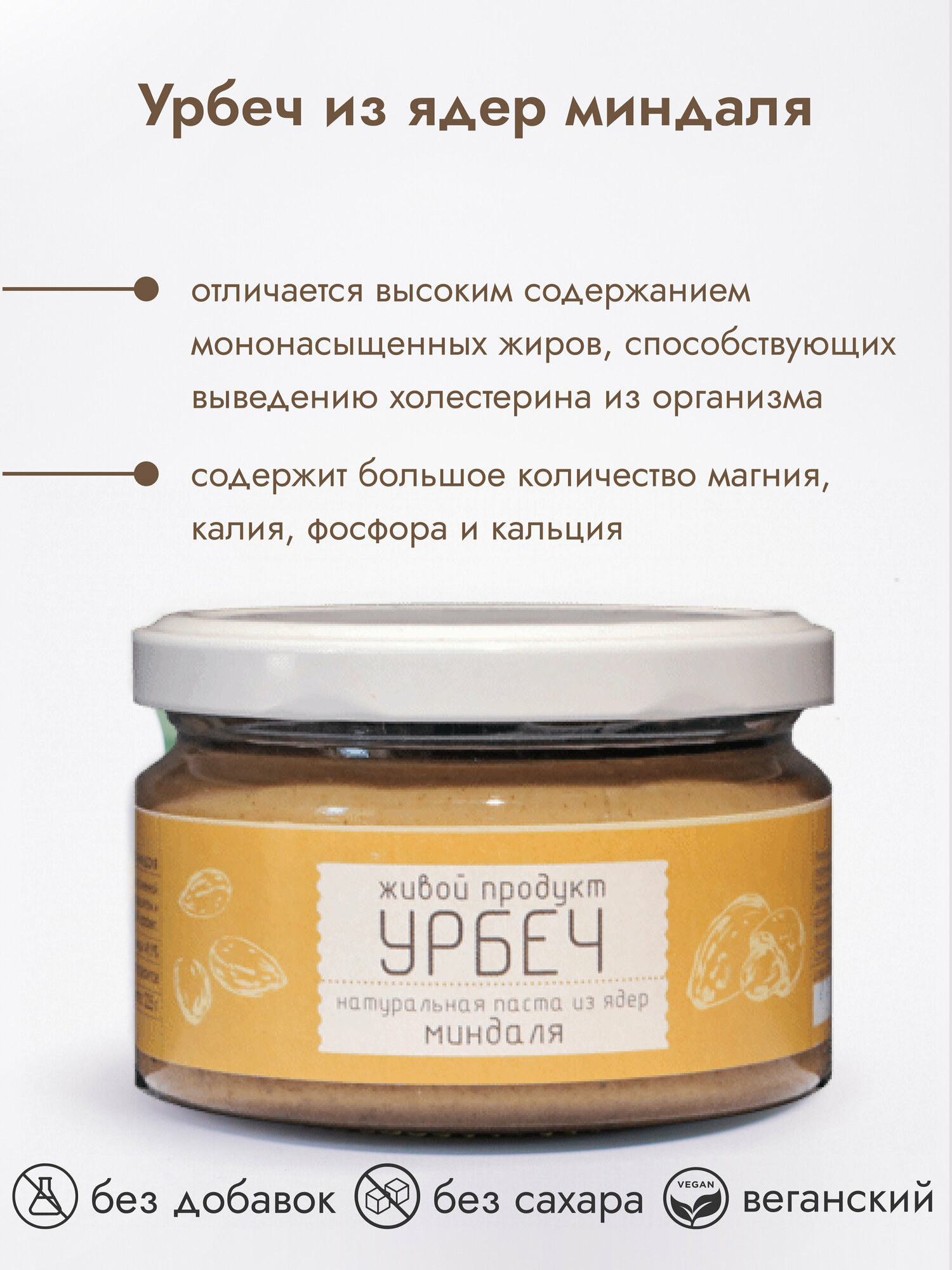 Урбеч Живой Продукт из ядер миндаля, 200 г, натуральная паста без добавок и без сахара