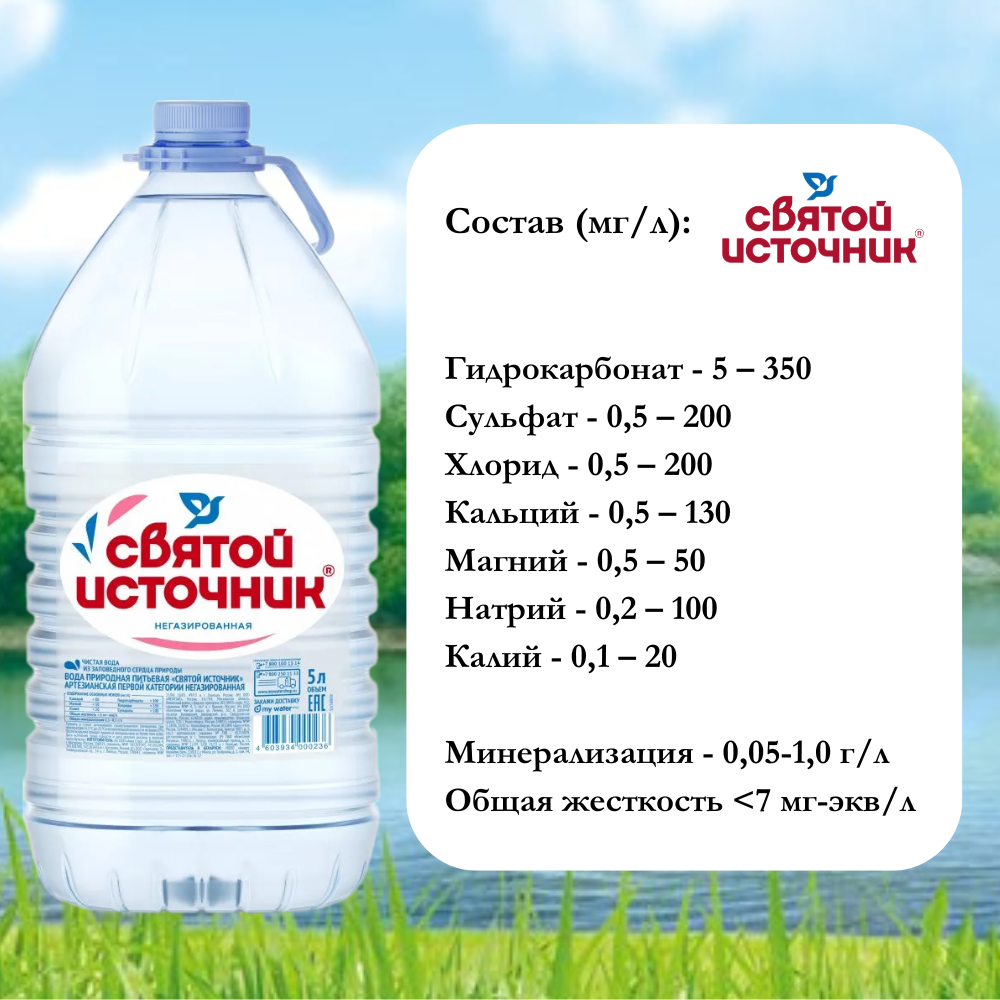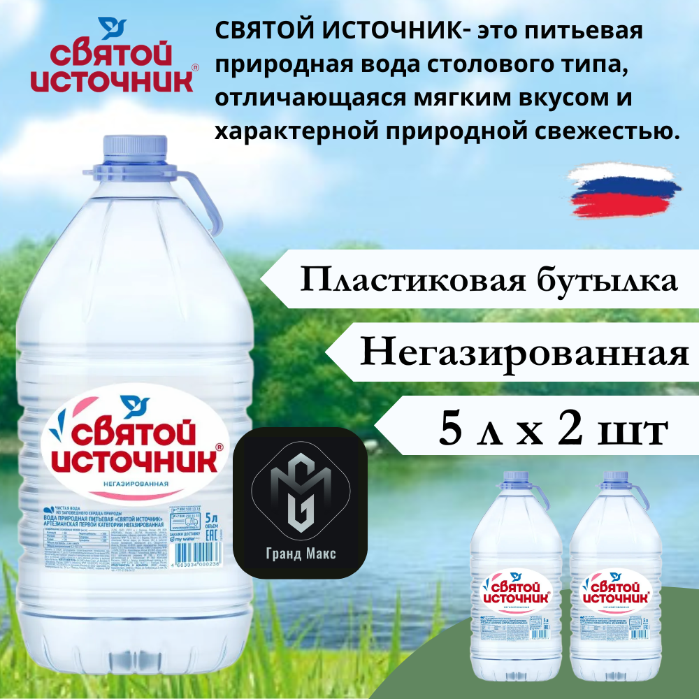 Вода природная питьевая "Святой источник" негазированная 5,0 л. ПЭТ (2 штуки)