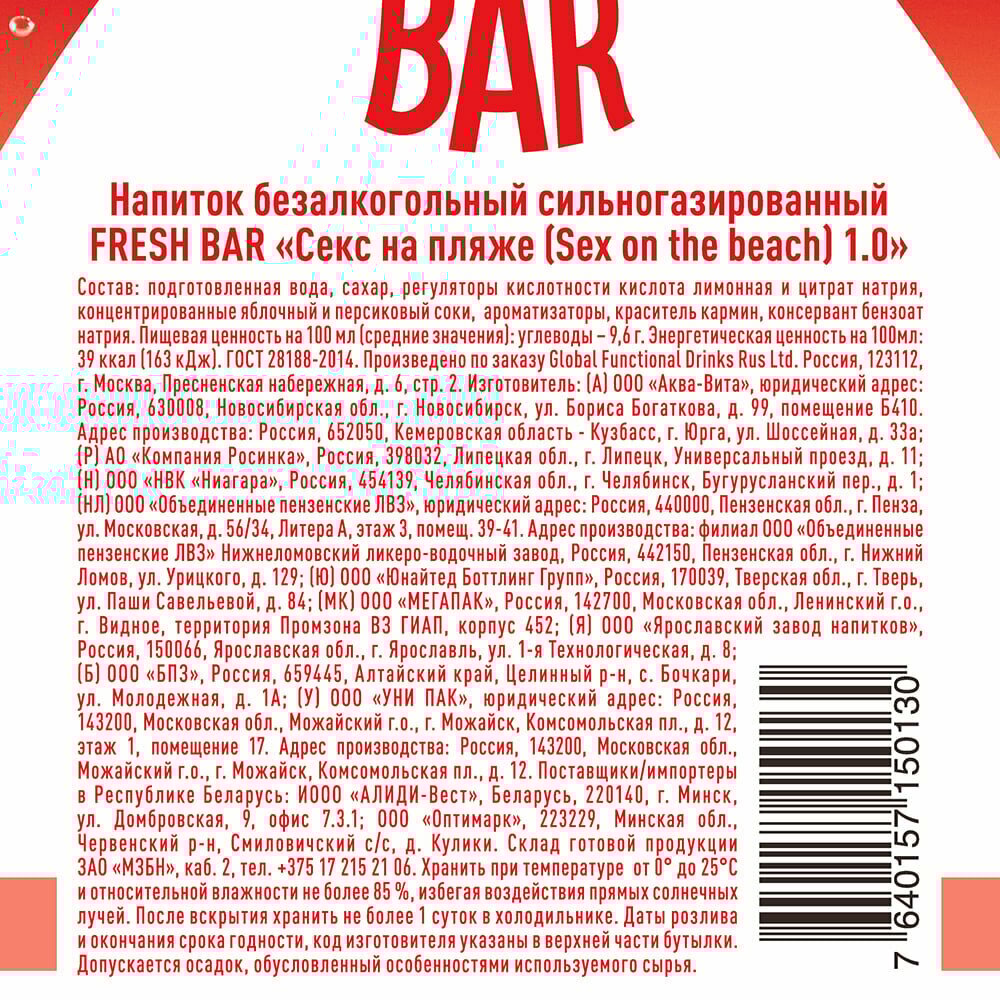 Напиток сильногазированный "Sex on the beach", Fresh Bar, безалкогольный, 0,48 л интересное:
