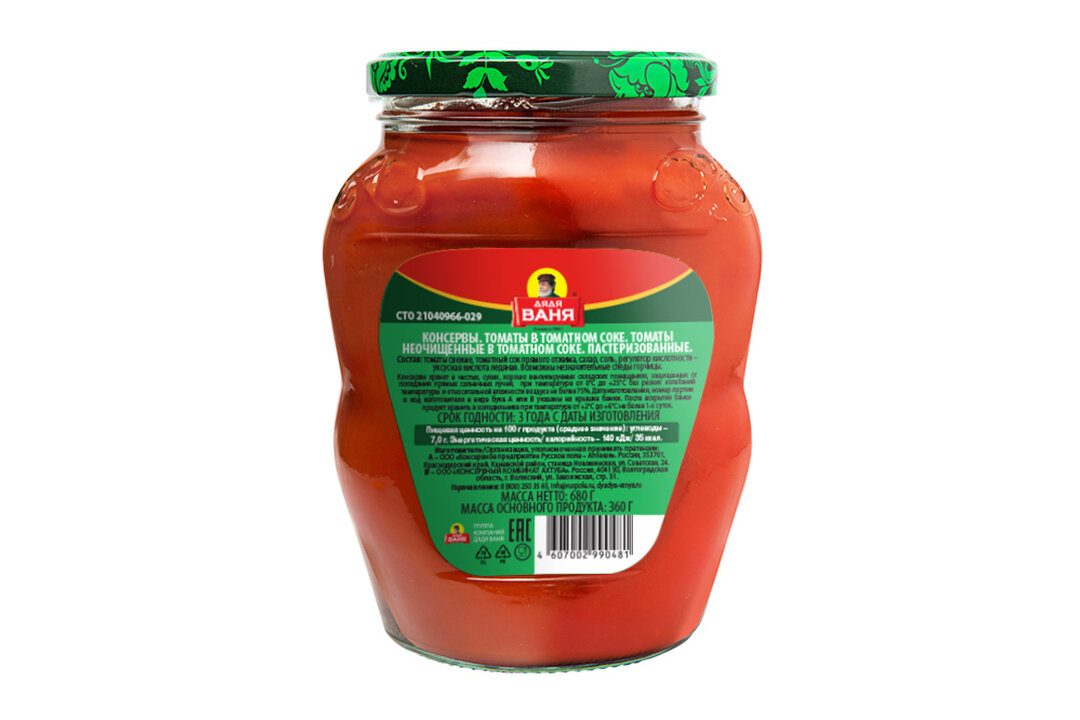 Томаты "Дядя Ваня" неочищенные в собственной соку 680 г интересное: