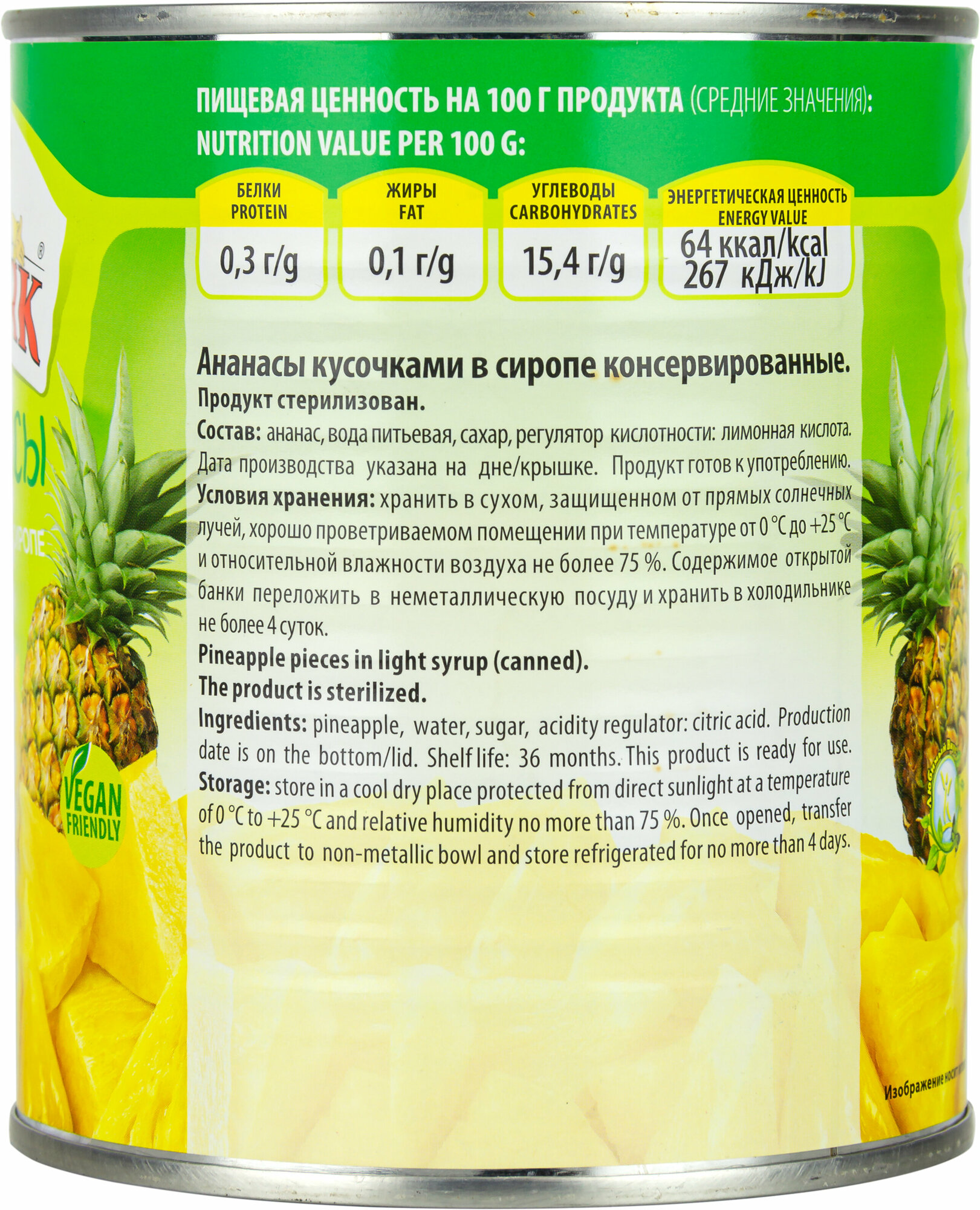 Ананасы Lutik консервированные кусочками в сиропе, 850мл
