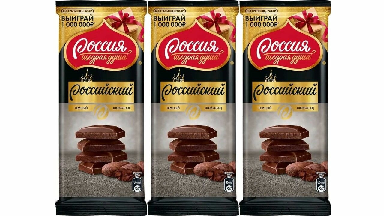 Шоколад Россия - Щедрая душа! Российский темный, 82 г