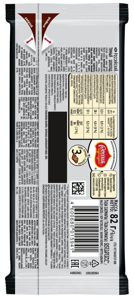 «Россия» - щедрая душа!®. Российский. Темный шоколад 82г.