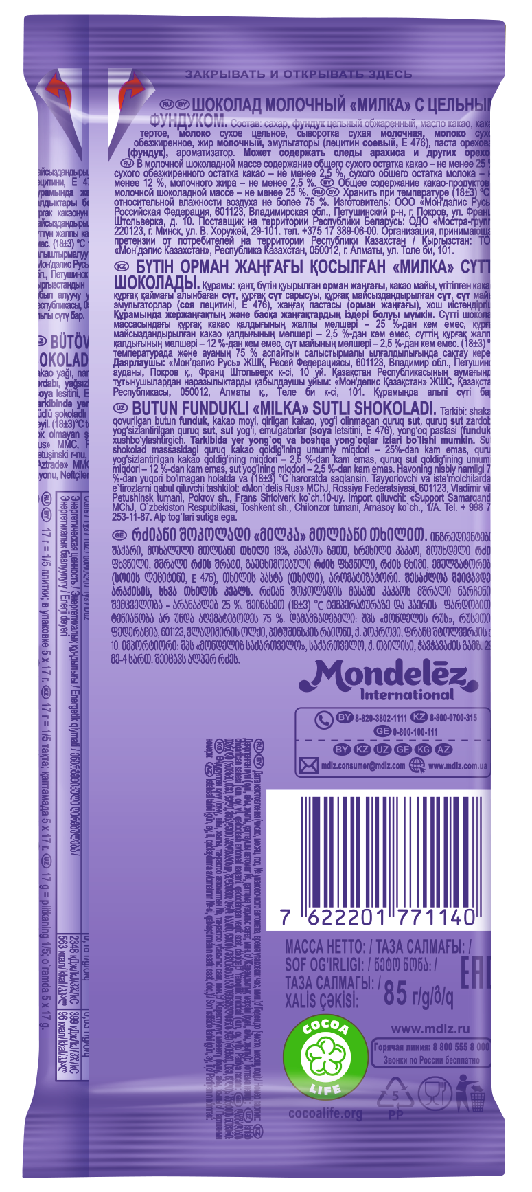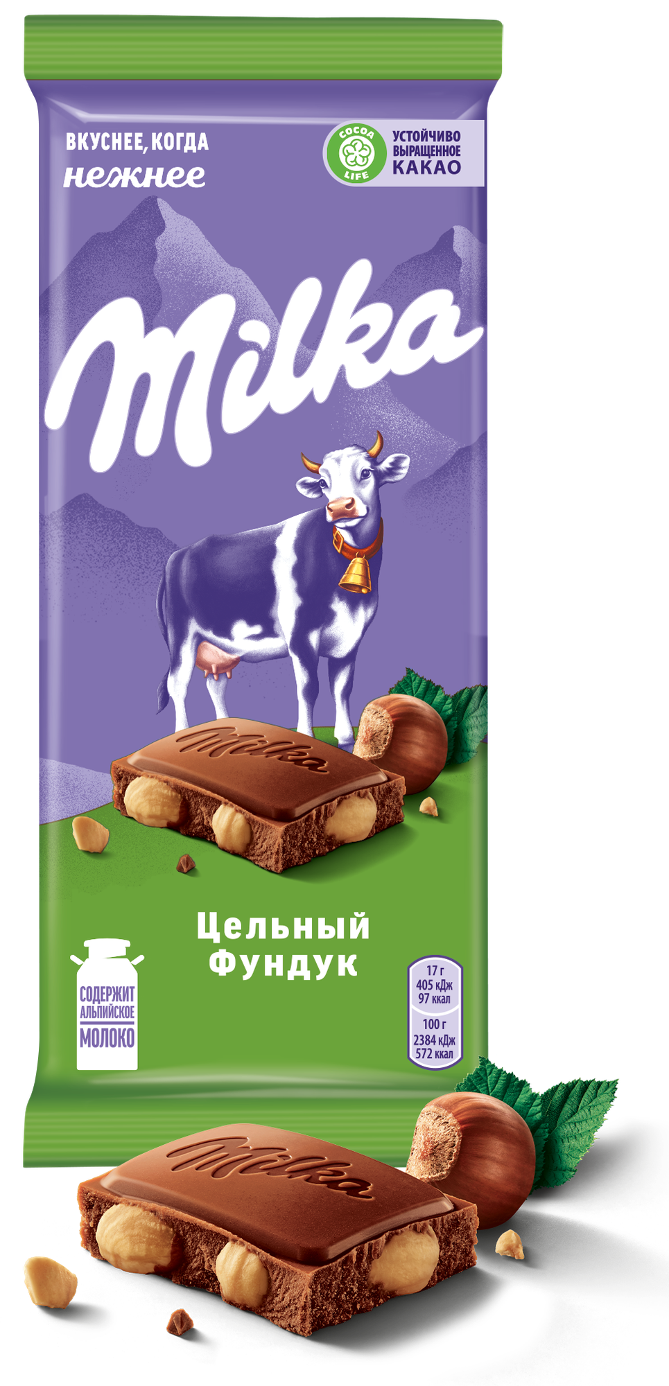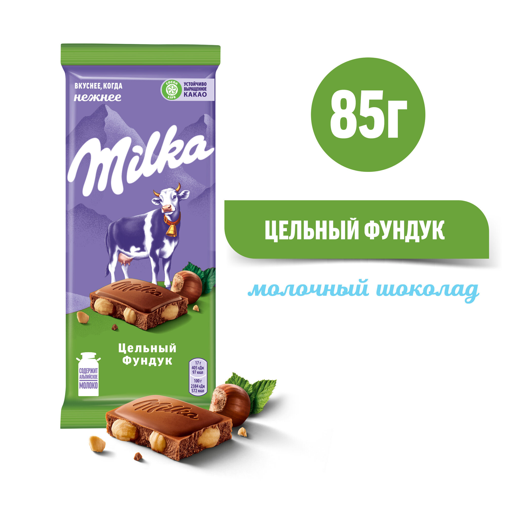 Шоколад MILKA (Милка) молочный, с цельным фундуком, 85 г, 100841
