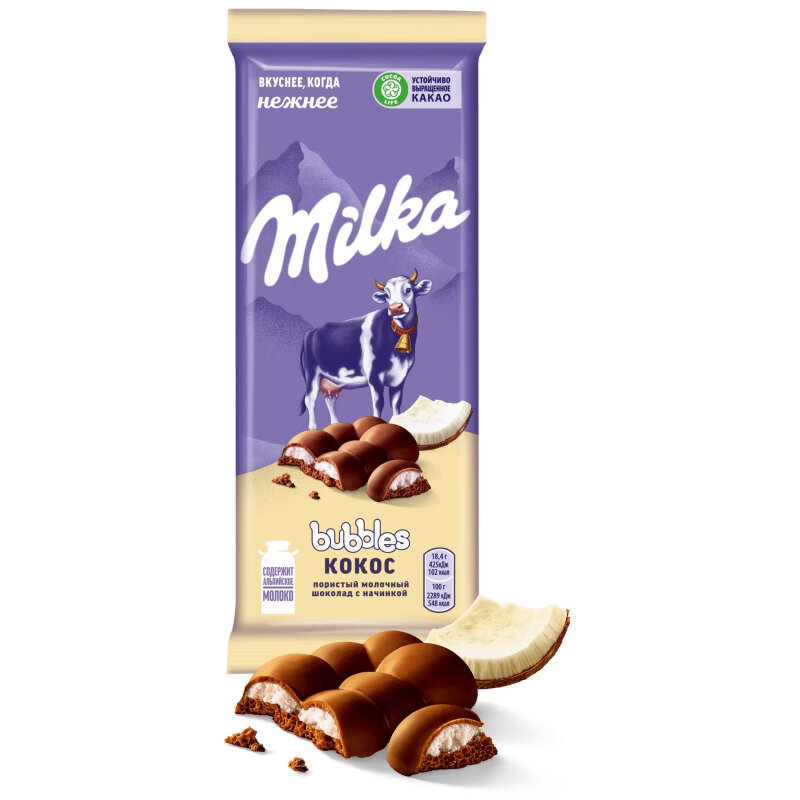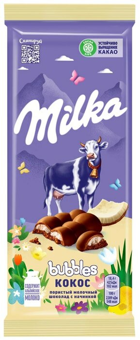 Шоколад Милка (РФ) Bubbles Кокос 92г интересное:
