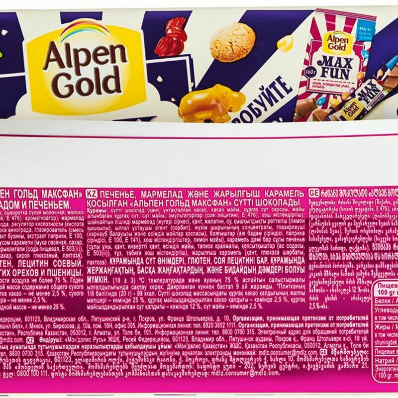 Купить Шоколад Alpen Gold MaxFun Карамель Мармелад и Печенье 160 гр