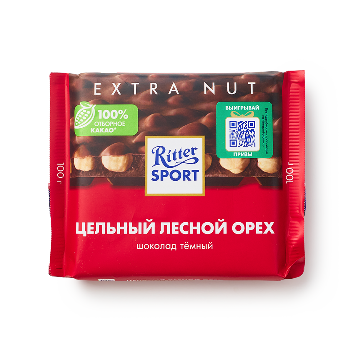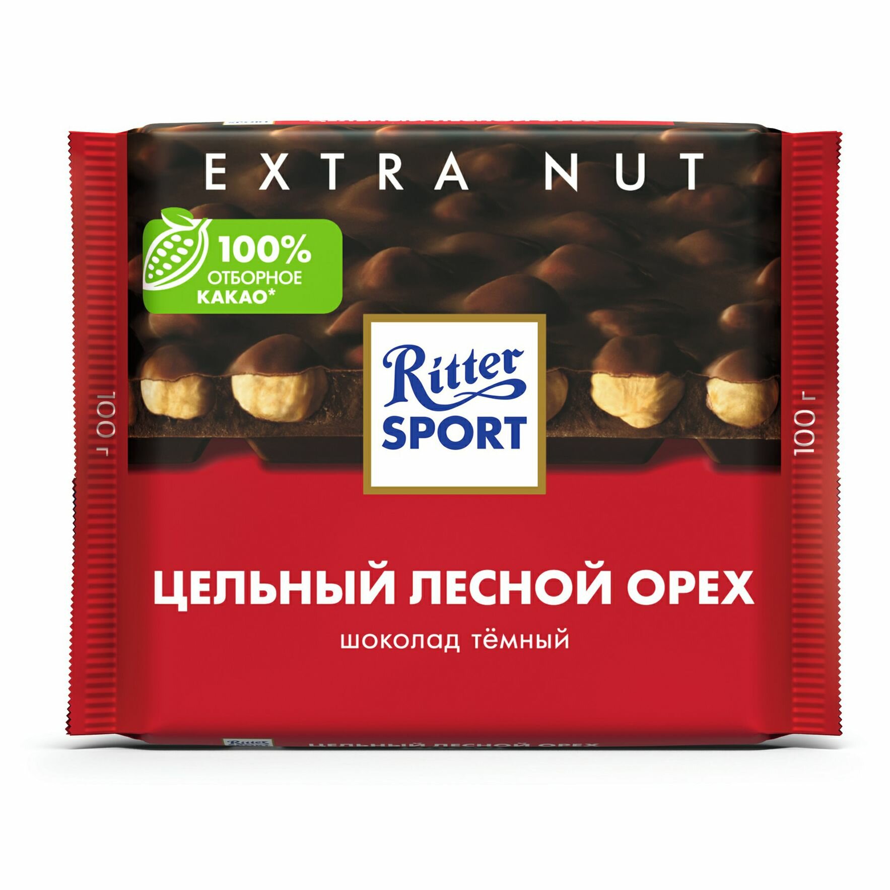 Ritter Sport Шоколад Extra Nut темный, с цельным лесным орехом 100 гр., флоу-пак 10 шт/уп.