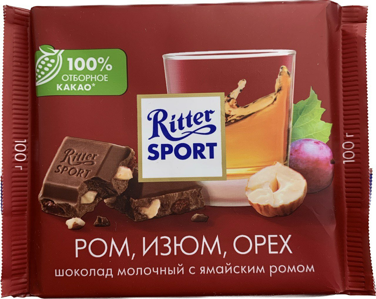 Шоколад RITTER SPORT "Ром, изюм, орех", молочный, 100 г, Германия, RU126
