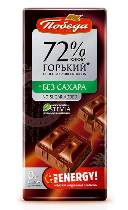 Шоколад Победа Вкуса Горький без сахара 72% какао,100г интересное: