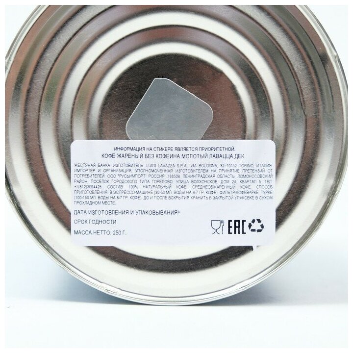 СохранитьКофе молотый Lavazza Caffe Decaffeinato жестяная банка, 250 г, банка интересное: