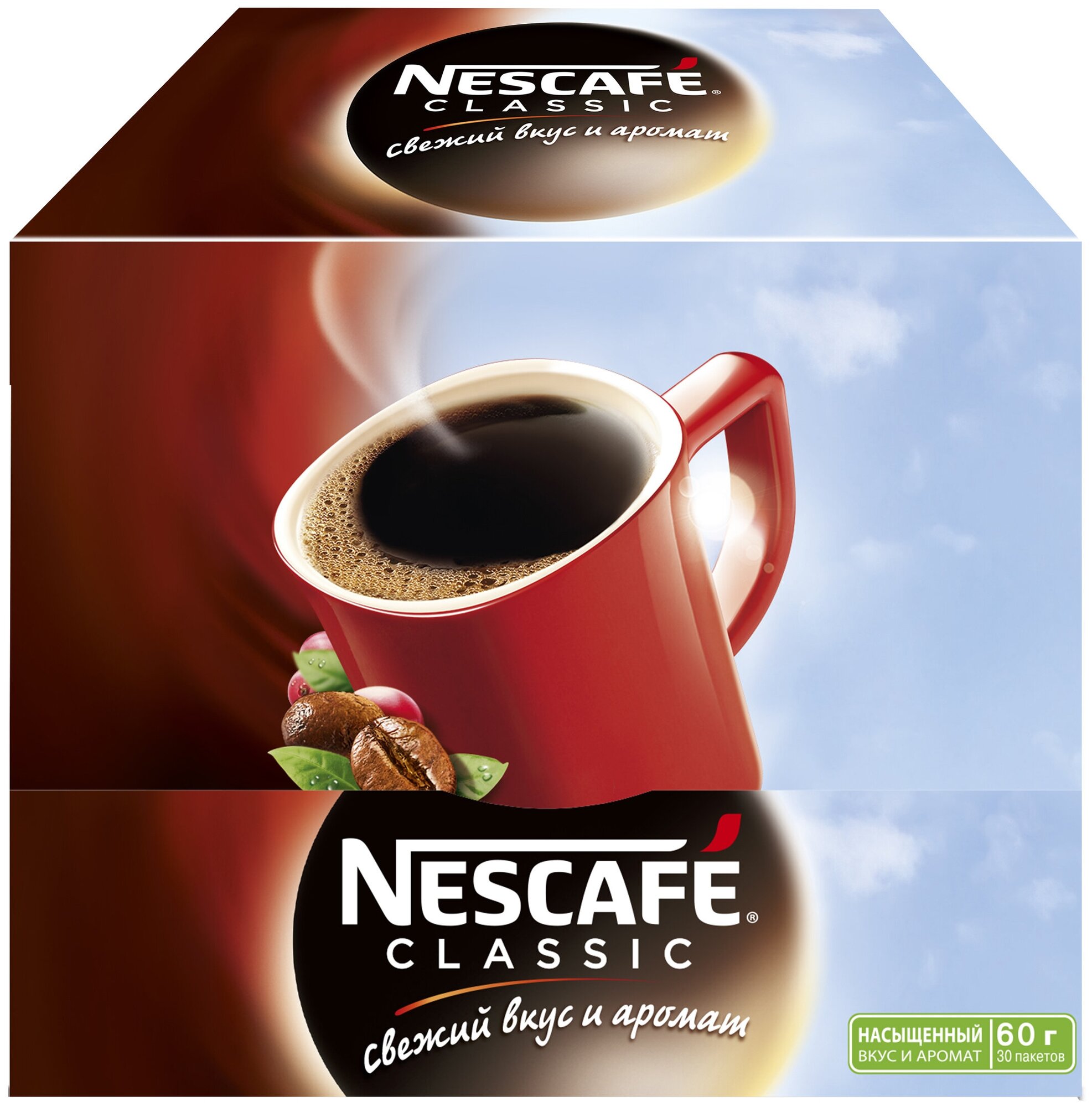 Растворимый кофе Nescafe Classic, в пакетиках, 30 уп., 60 г