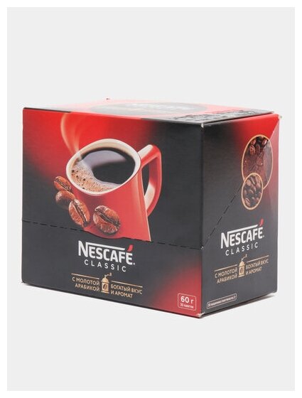 Кофе растворимый Nescafe "Classic", гранулированный/порошкообразный, с молотым, порционный, 30 пакетиков*2г, картонная коробка