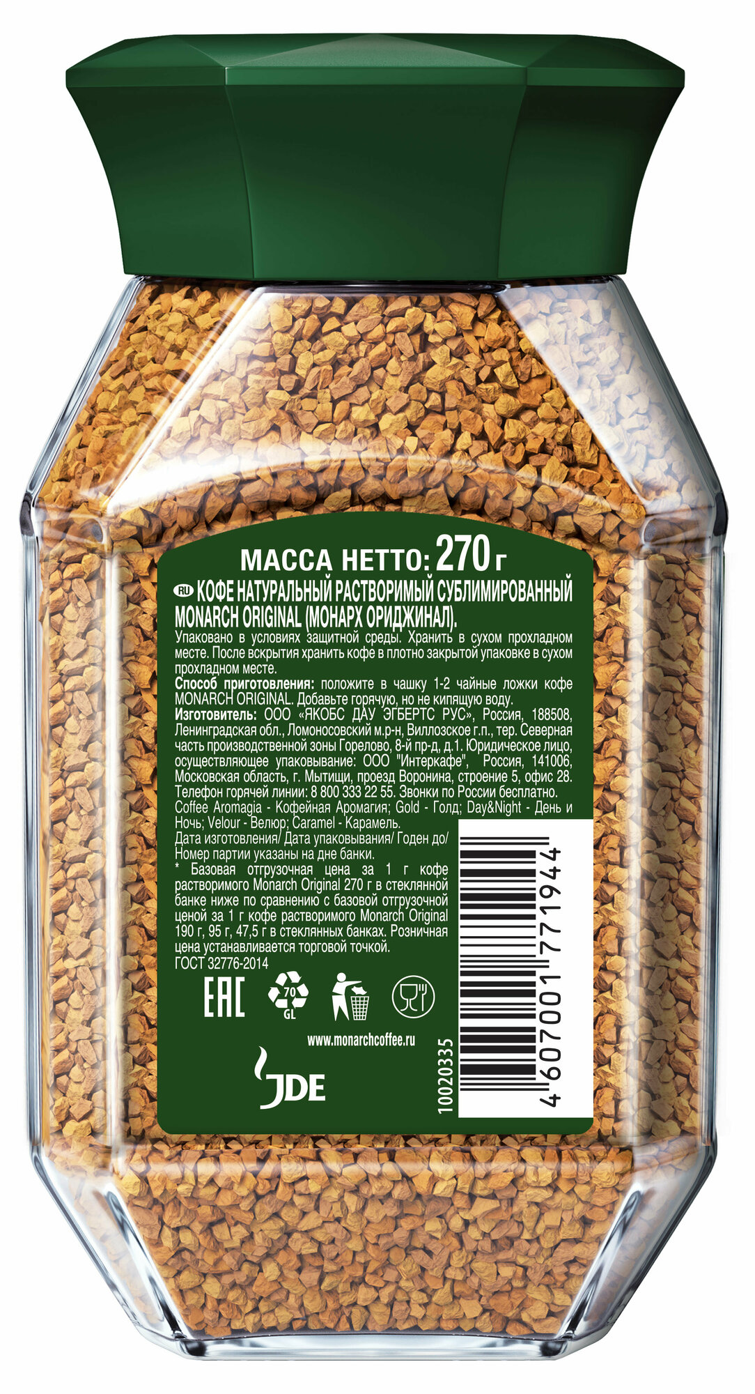 СохранитьКофе растворимый JACOBS "Monarch" 270 г, стеклянная банка, сублимированный, 8052852 интересное: