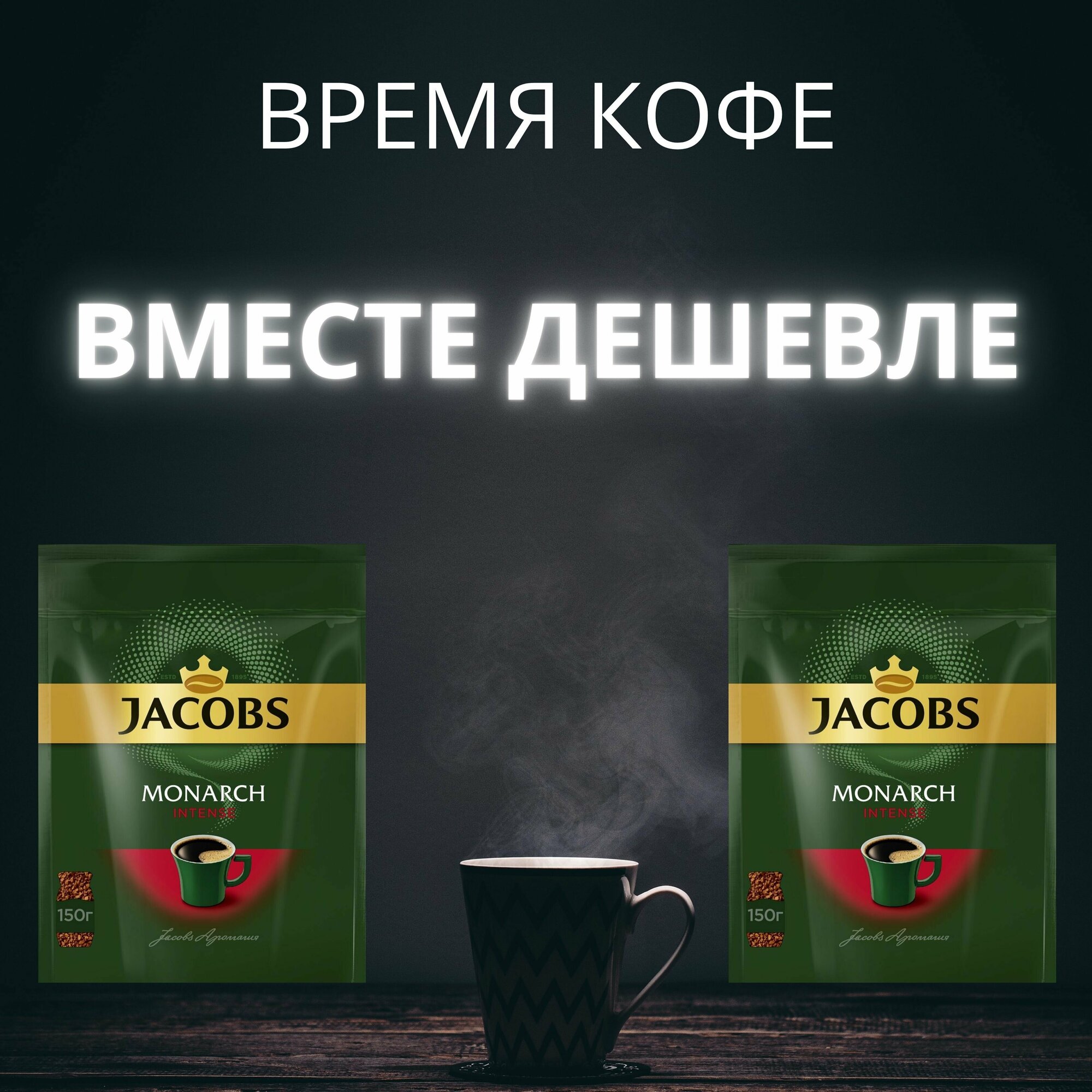 Кофе растворимое Jacobs Monarch INTENSE, упак. 2 шт. по 150г.