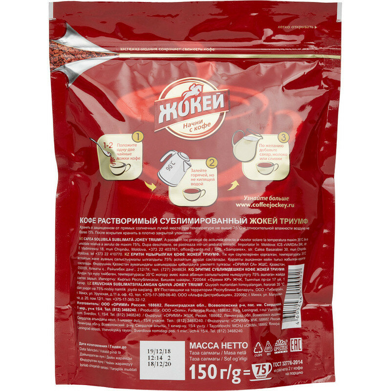 Кофе растворимый Жокей Триумф сублимированный, пакет, 150 г