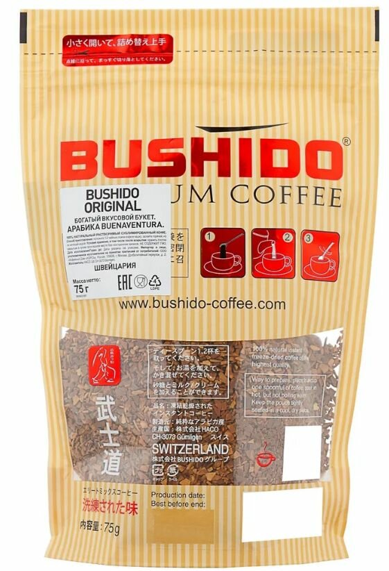 Кофе растворимый ORIGINAL, пакет 75 Г, BUSHIDO
