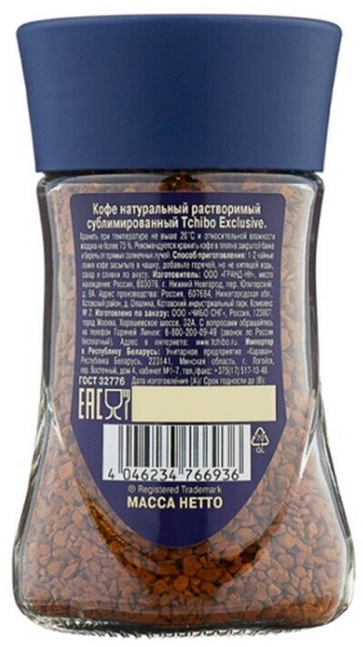 Кофе растворимый Tchibo exclusive, 95 г стеклянная банка (Чибо)