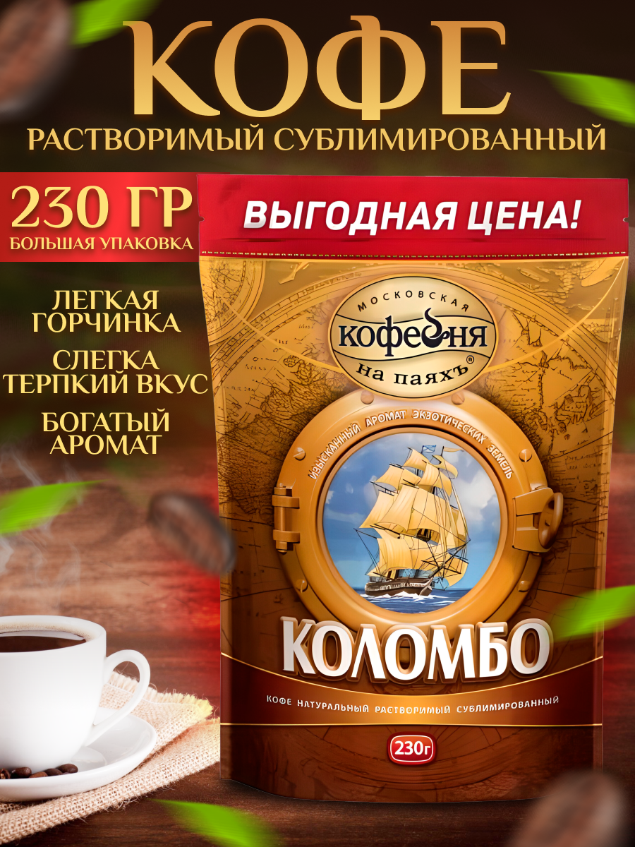 Kофе рaстворимый Московская кофейня на паяхъ Коломбо, 100% натуральный, сублимированный, 230 г