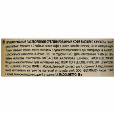 Кофе растворимый Today Pure Arabica 95 грамм